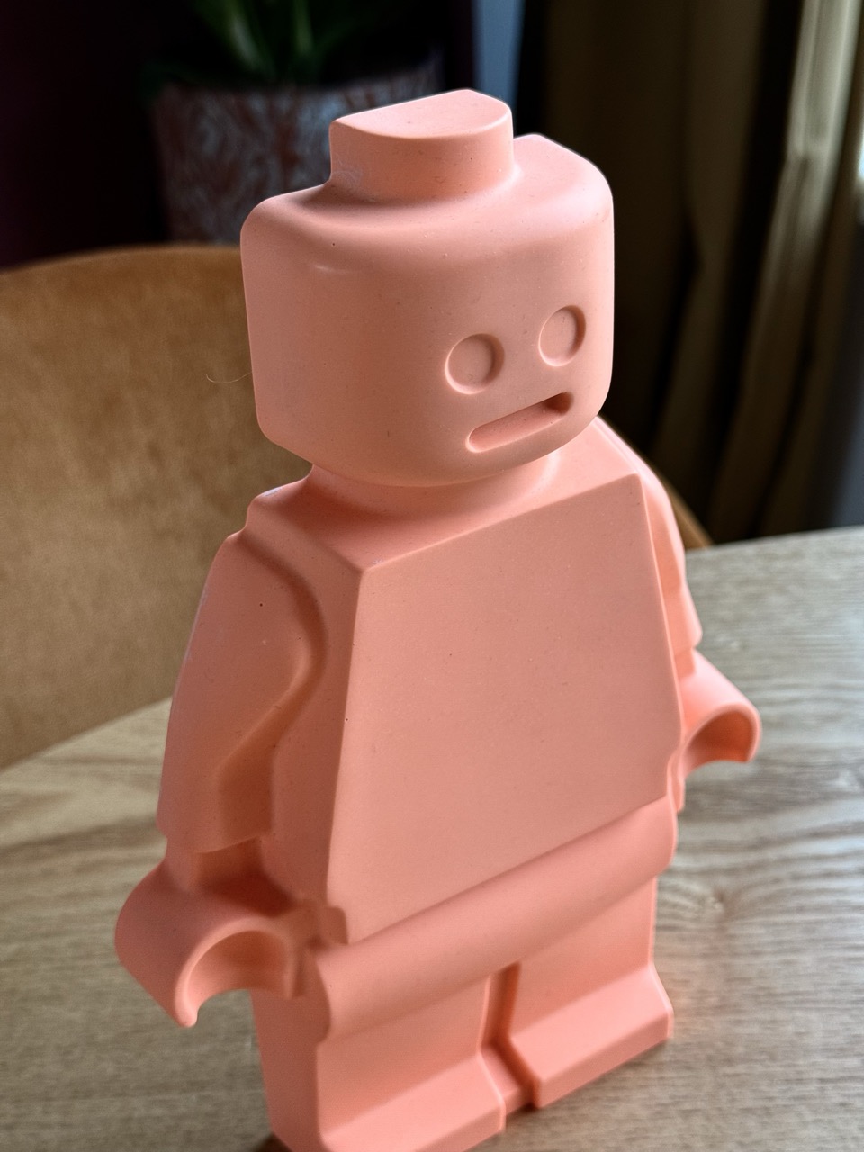 Dit leuke lego poppetje van een soort steen materiaal in een fel oranje kleur is een toffe statement voor in je huis of kinderkamer!