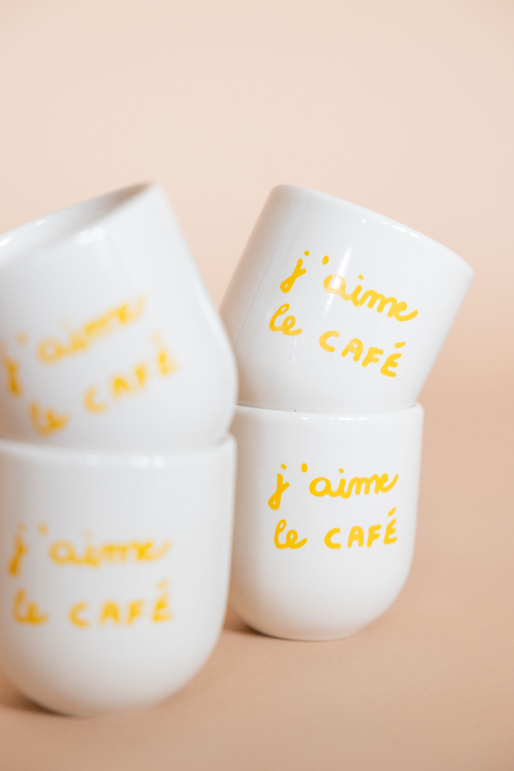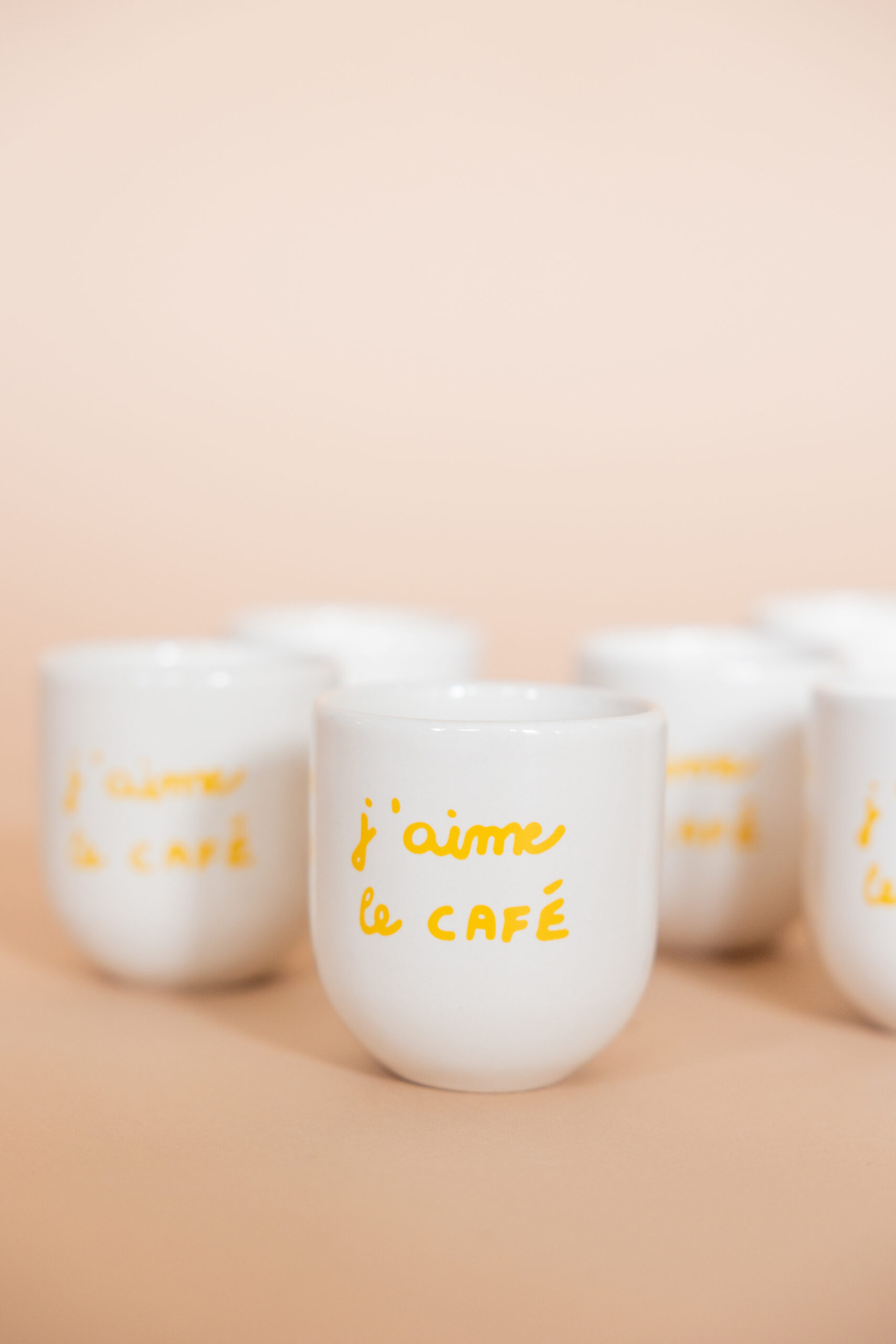 Leuke witte mok met gele tekst “J’aime le café”. Hou jij van koffie? Dan is deze mok een musthave!