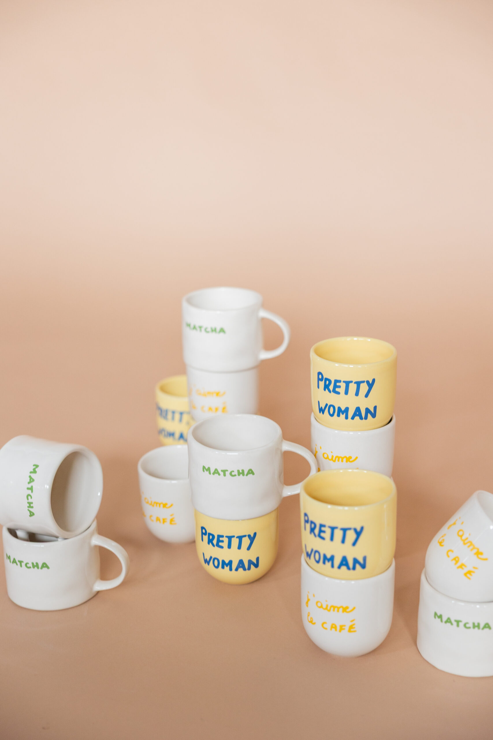 J’aime le cafè betekent in het Frans, “ik hou van koffie”. Deze prachtige witte keramische mok met gele letters is gewoon een must-have Sisi mok. Deze handgemaakte mok is vaatwasmachinebestendig en elk exemplaar is uniek, met met de hand aangebrachte decals, dus er kunnen kleine variaties optreden. 8x8x8 cm
