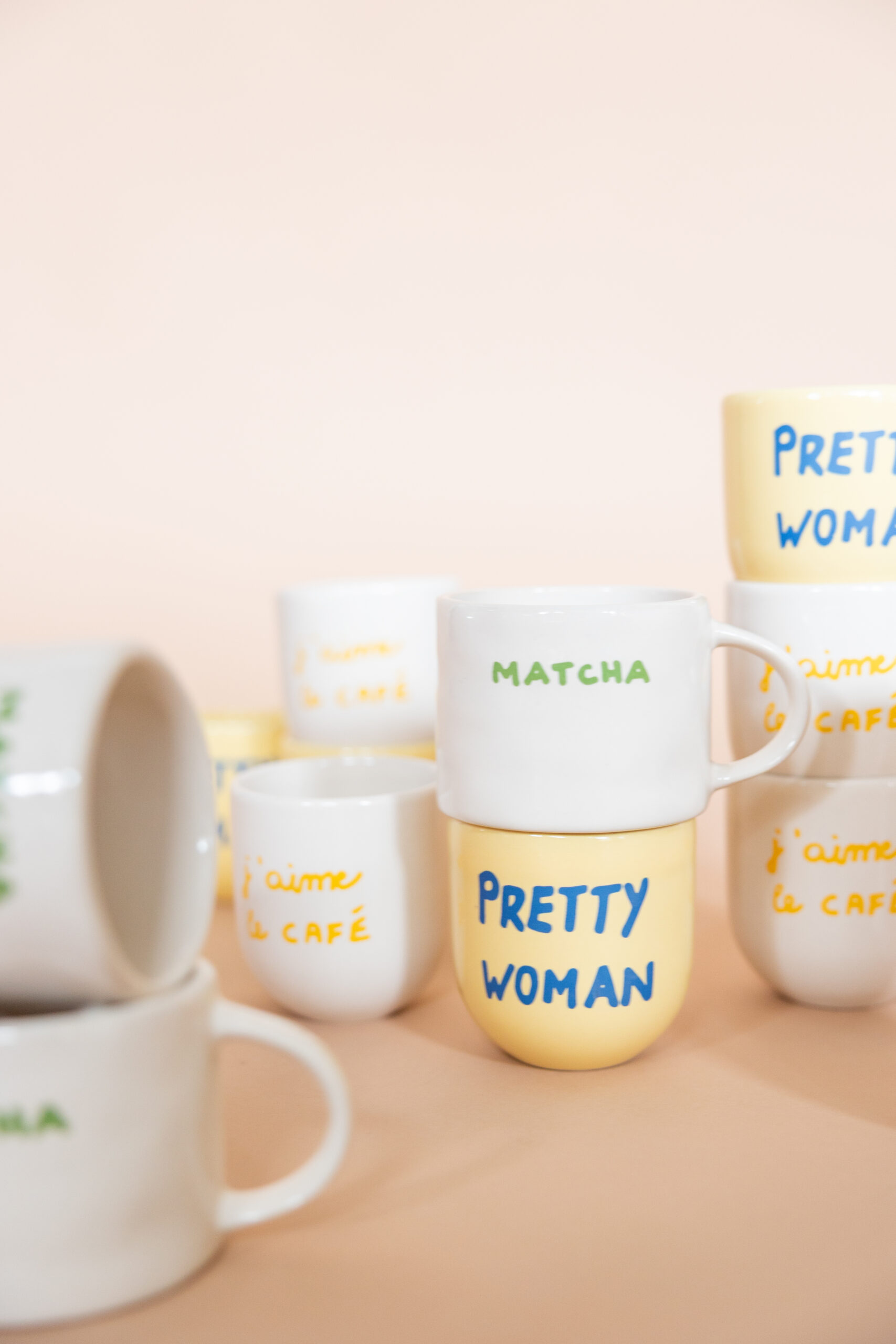 Welke mok kan dan perfecter zijn dan de Pretty Woman mok? Voor alle vrouwen op deze planeet en voor hun geweldige koffietijd. Deze handgemaakte mok is vaatwasmachinebestendig en elk exemplaar is uniek, met met de hand aangebrachte details, dus lichte variaties kunnen voorkomen. 8x8x8 cm.