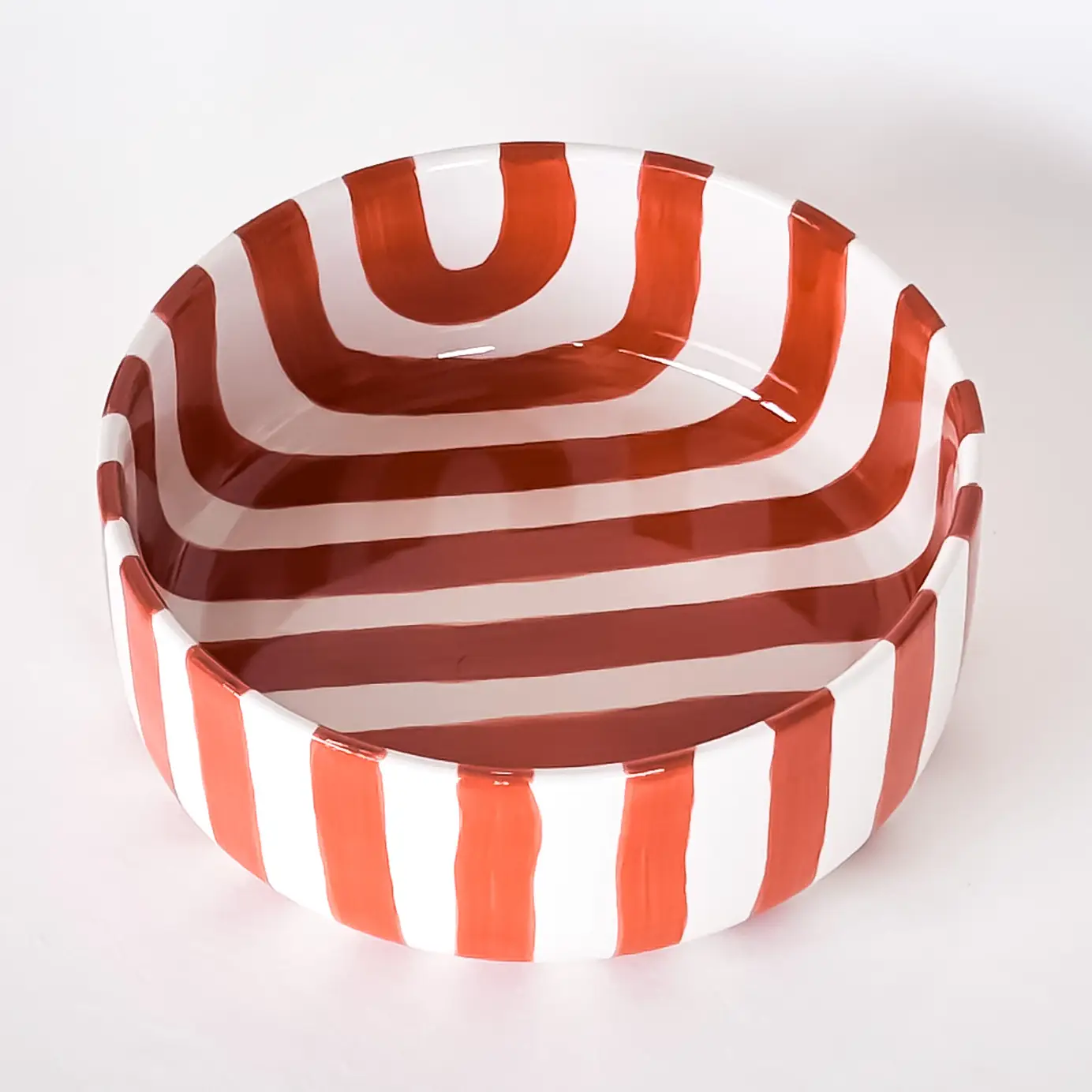 Deze schaal brengt het warme levensgevoel van Italië direct op tafel – nu in de nieuwe, karaktervolle kleur Cotto Oranje. Elk stuk wordt met de hand op traditionele wijze vervaardigd en is een echt unicum: strepen en glazuur worden zorgvuldig met de hand aangebracht, waardoor elk exemplaar zijn eigen charme krijgt. Met zijn veelzijdige formaat is de schaal ideaal voor bijgerechten, voorgerechtssoepen of de ochtendmuesli – een echte allrounder voor dagelijks gebruik in keuken en huishouden.