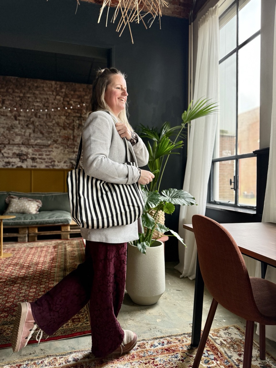 Hoe leuk is deze tas? Perfect voor een kleine boodschap, naar de sauna of voor wat sportkleding! De tas is van een katoenen stof en is met strepen in zwart en wit. Ik vind hem helemaal leuk!